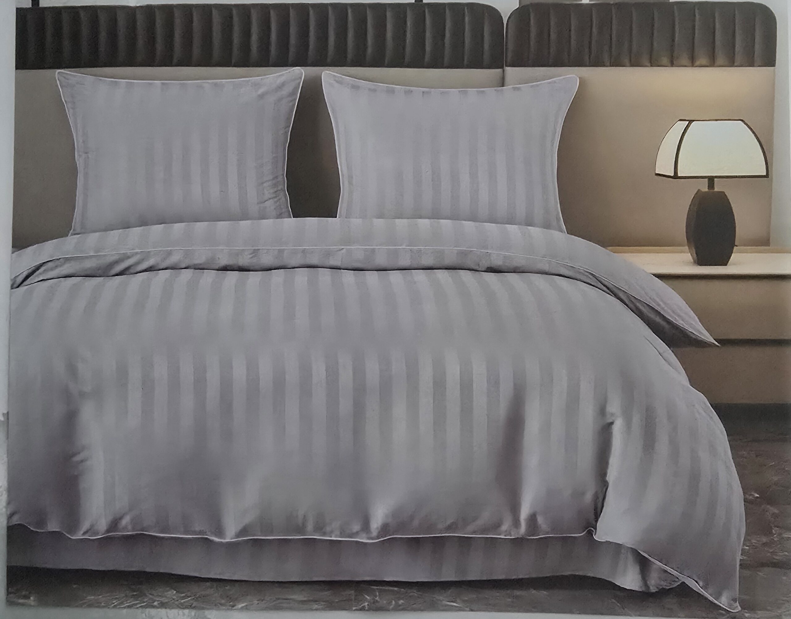 Elegancka pościel w delikatne pionowe pasy o jednolitej kolorystyce, subtelnie podkreślona kontrastową lamówką. Minimalistyczna estetyka, która pasuje do nowoczesnych i klasycznych wnętrz.